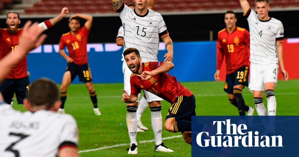None were truly outstanding, but they will help a player under pressure. They helped Spain too, settling them after an unconvincing start. That said, Germany did not entirely convince either, the back three particularly. They almost gave away an early opener when Can’s dreadful back-pass and Kevin Trapp’s misjudgment set Rodrigo clear. But, seemingly free to roll the ball into an open net, the Leeds forward hesitated momentarily and was dispossessed.