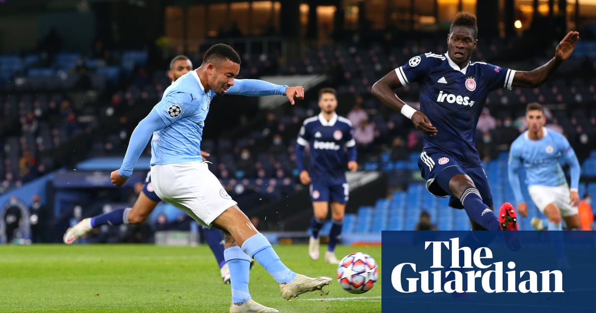 After this victory over Olympiakos a draw in the reverse fixture in Greece guarantees passage to the knockout phase. “We need one more point to qualify,” Guardiola said. “Now we have four or five days to recover well, have one day off, and prepare for Liverpool [on Sunday]. It is good news that Gabriel is back. And, in the first half, we were really good.”
