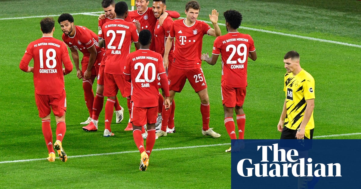 But it was the Poland striker Lewandowski who scored in the 24th minute, before the goal was ruled out through VAR for offside in an extremely close decision. Dortmund appeared subdued and Bayern seized control, Serge Gnabry and Kingsley Coman both having chances.