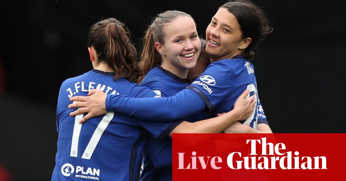 Sam Kerr starts up front for Chelsea, with Pernille Harder on the bench as Canada’s Jessie Fleming gets a surprise start. Beth England is unavailable after suffering a concussion in the Champions League win over Atlético Madrid.