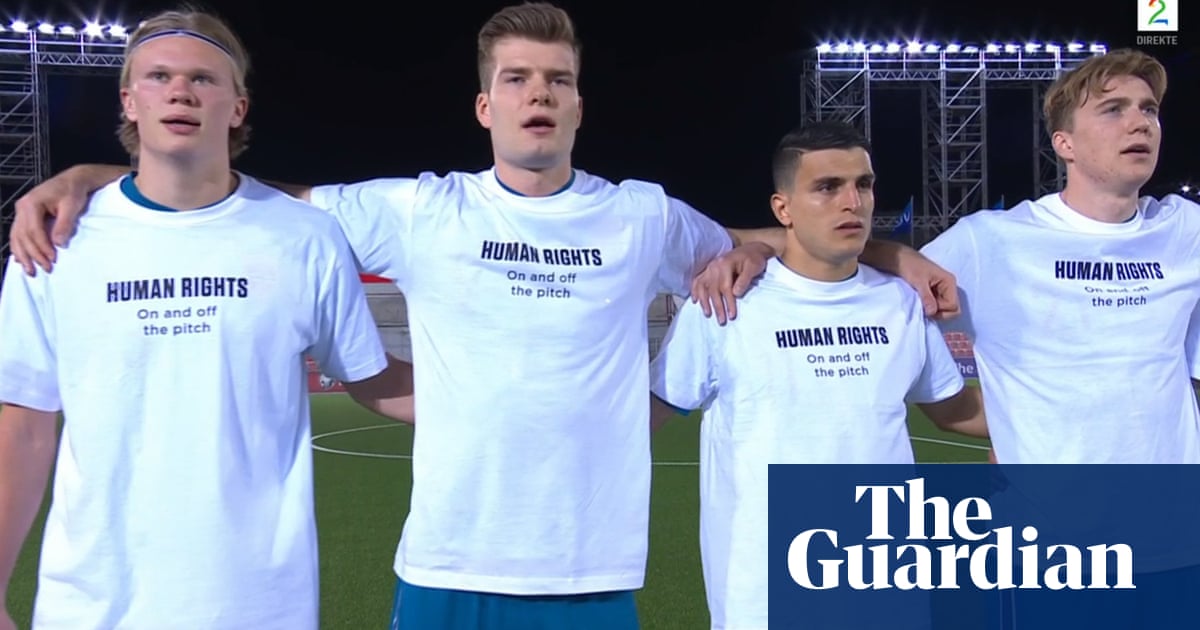 The players wore the same message during warmup before swapping to the one saying “Human rights – on and off the pitch”. Solbakken told Norwegian TV2: “This is a little bit what we have been talking about, to put the focus on some of that that has been a discussion off the pitch. The boys were keen to do this and I am here as an example of that.”