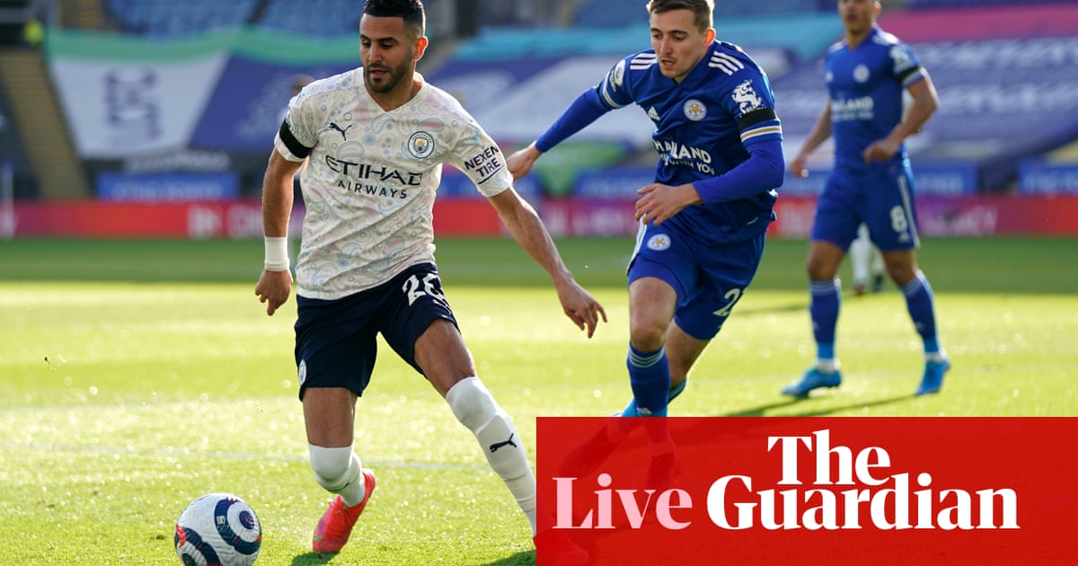 13 min: Manchester Citypress and probe, showiong no signs of impatience as they look for a way through Leicester’s defence. Riyad Mahrez attempts a cross and Leicester win the ball back briefly. Youri Tielemans quickly gives it away.