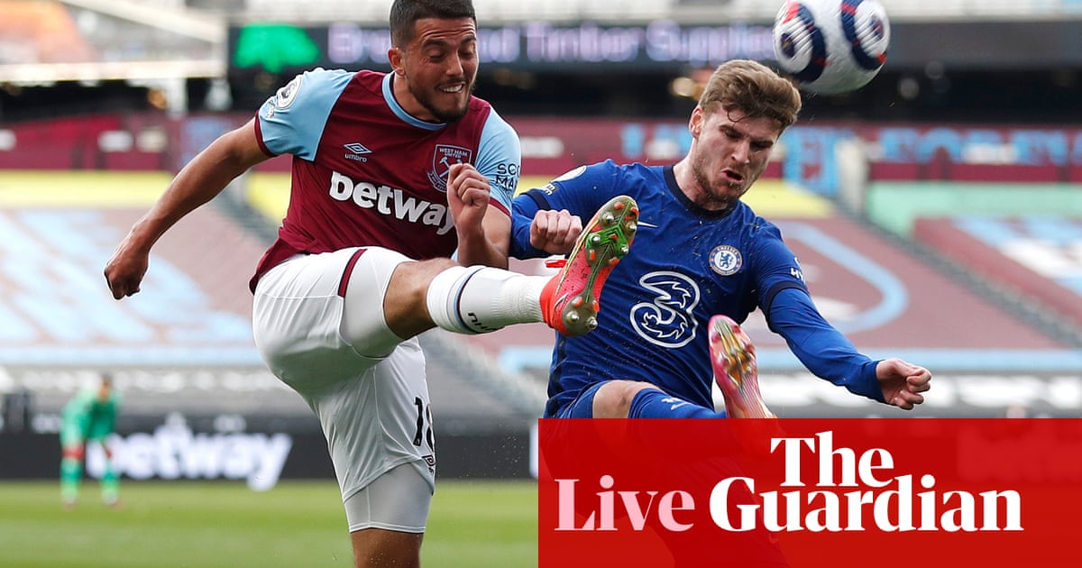 31 min: Mount meanders down the right and rolls infield for Werner, who has his back to goal. He spins and shoots, but it’s always going high and wide right. For a brief second there, West Ham were exposed.