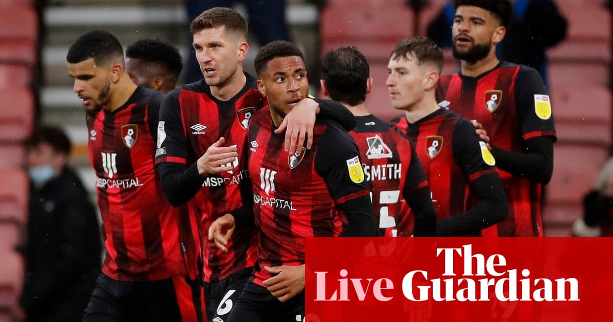 34 min: “You don’t know what you’re doing!” sing the Bournemouth fans at referee Tim Robinson, after he awards a soft free-kick to Brentford in the wake of some amateur dramatics from Brentford’s Mathias Jensen.